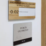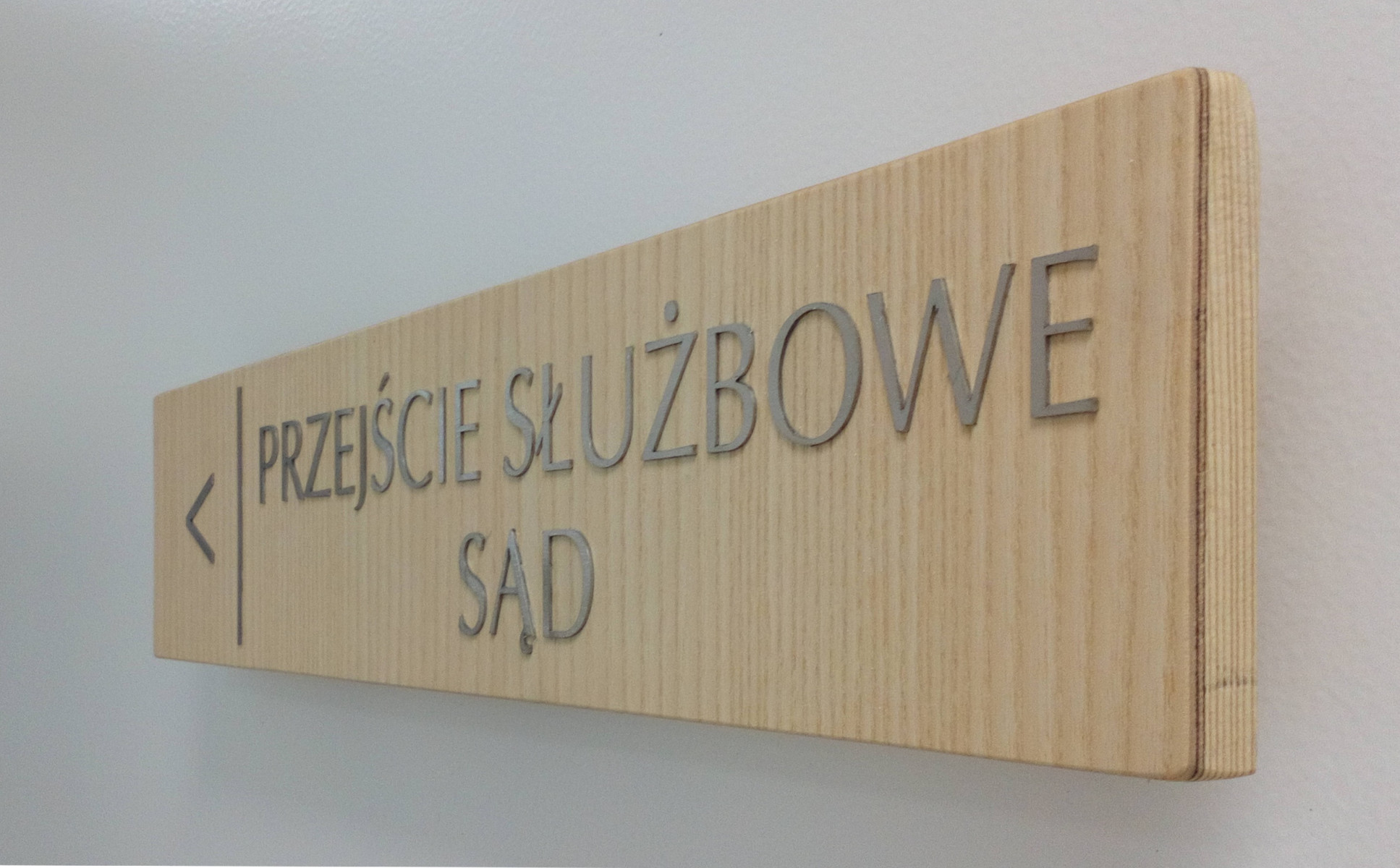 Oznakowanie całego gmachu Sądu Okręgowego w siedlcach. Tabliczki i tablice informacyjne serii RHYTHM. Tablice zbiorcze modułowe informacyjne RHYTHM MAX oraz RHYTHM MIDI, tablice prostopadłe oraz piktogramy.