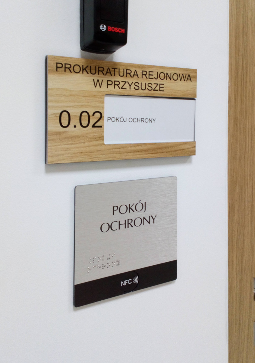 Tabliczki przydrzwiowe serii RHYTHM, plany tyflograficzne oraz nakładki z Braill’em – dla osób niedowidzących