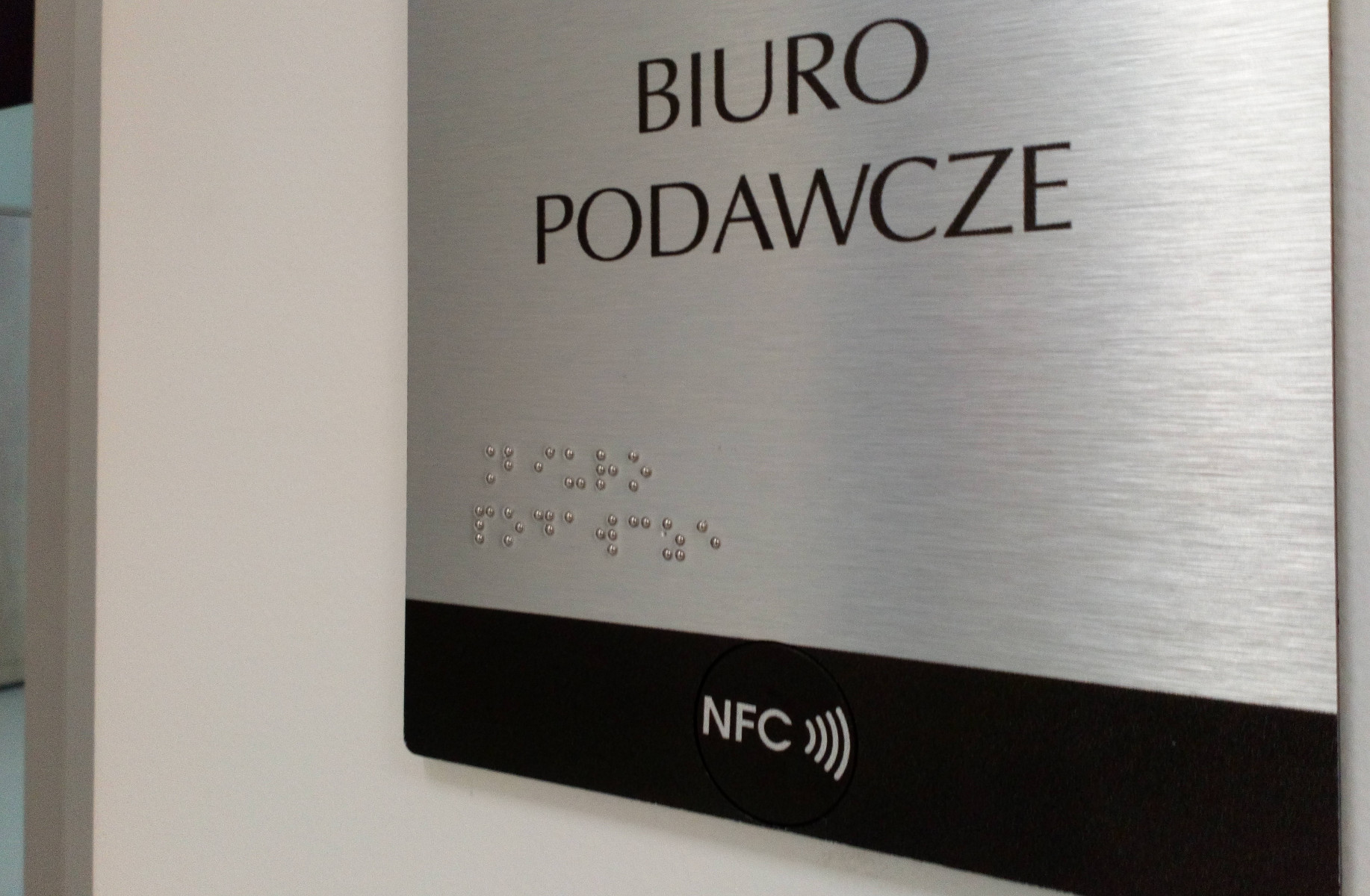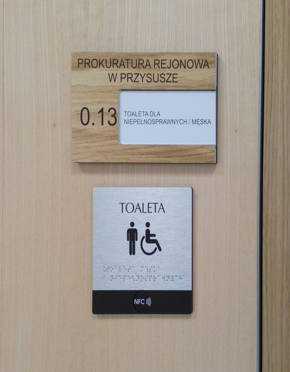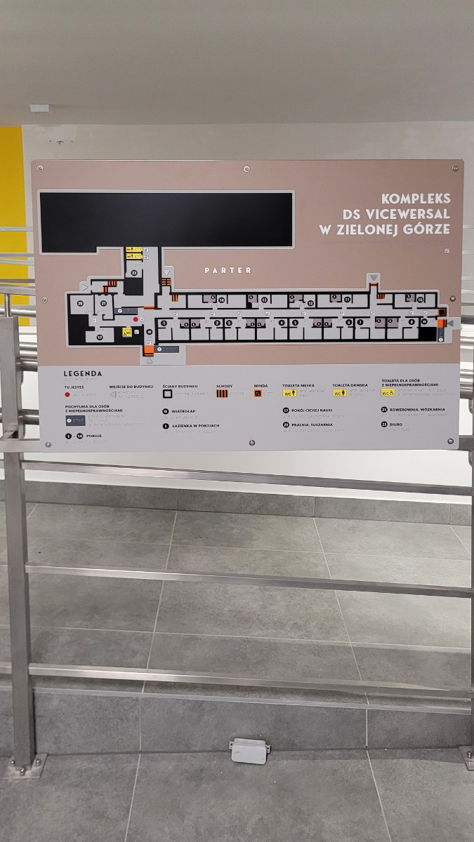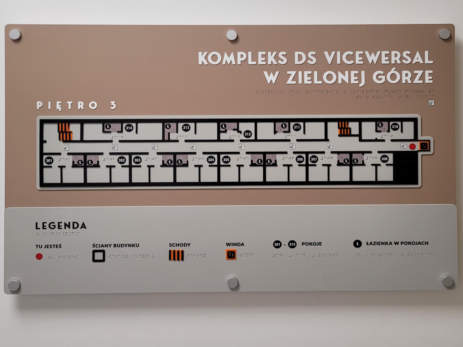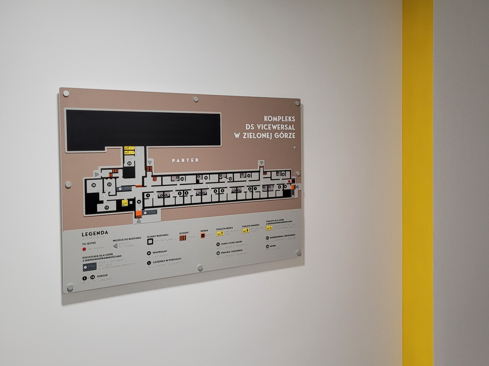 Tabliczki informacyjne Sibond z użyciem opisu w j. Braille’a oraz tablica tyflograficzna