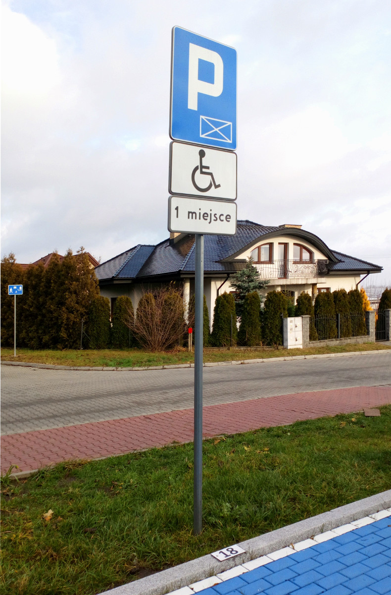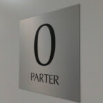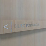 Tabliczki przydrzwiowe informacyjne z plexiglass oraz serii sibond. Realizacja oznakowania poziomego parkingu podziemnego – miejsca parkingowe, dla osób z niepełnosprawnością