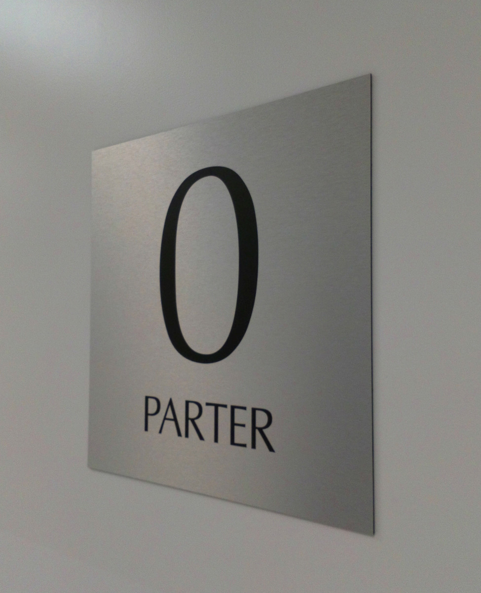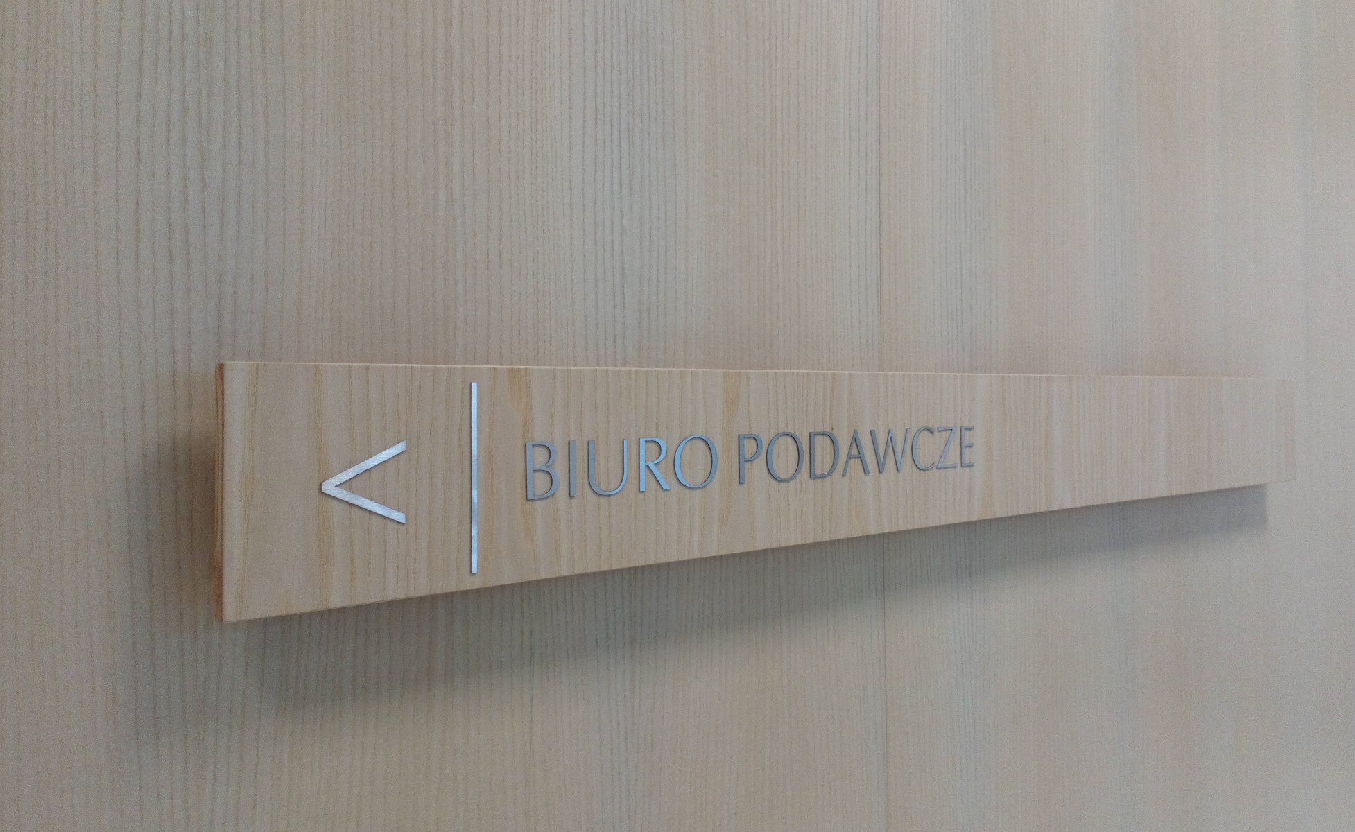 Oznakowanie składa się z tabliczek informacyjnych wykonanych na plexiglass, tablic kierunkowych RHYTHM oraz głównej tablicy zbiorczej. Do obiektu dostarczyliśmy również piny dotykowe i listwy dla oznakowania poziomego dla osób niedowidzących.