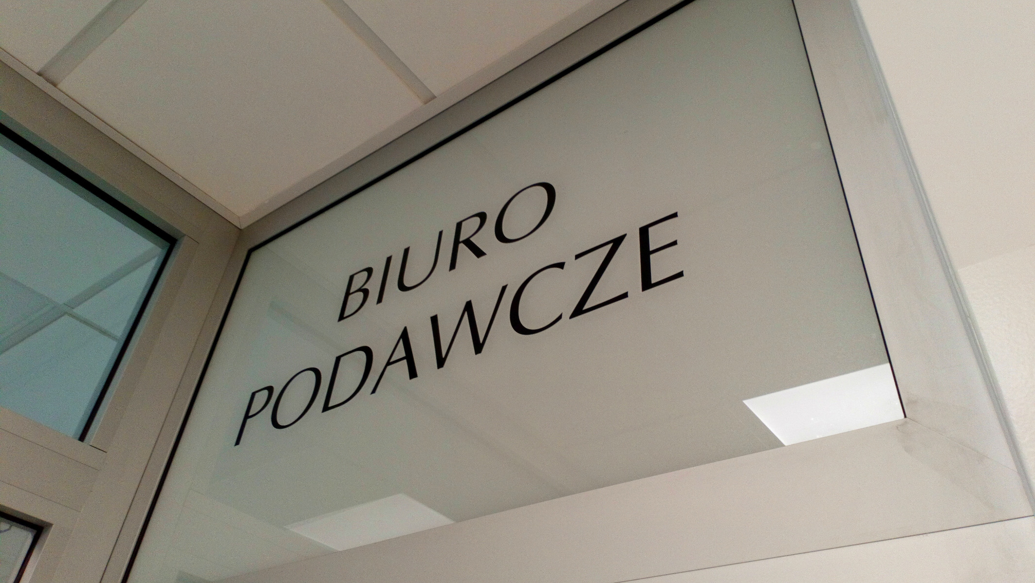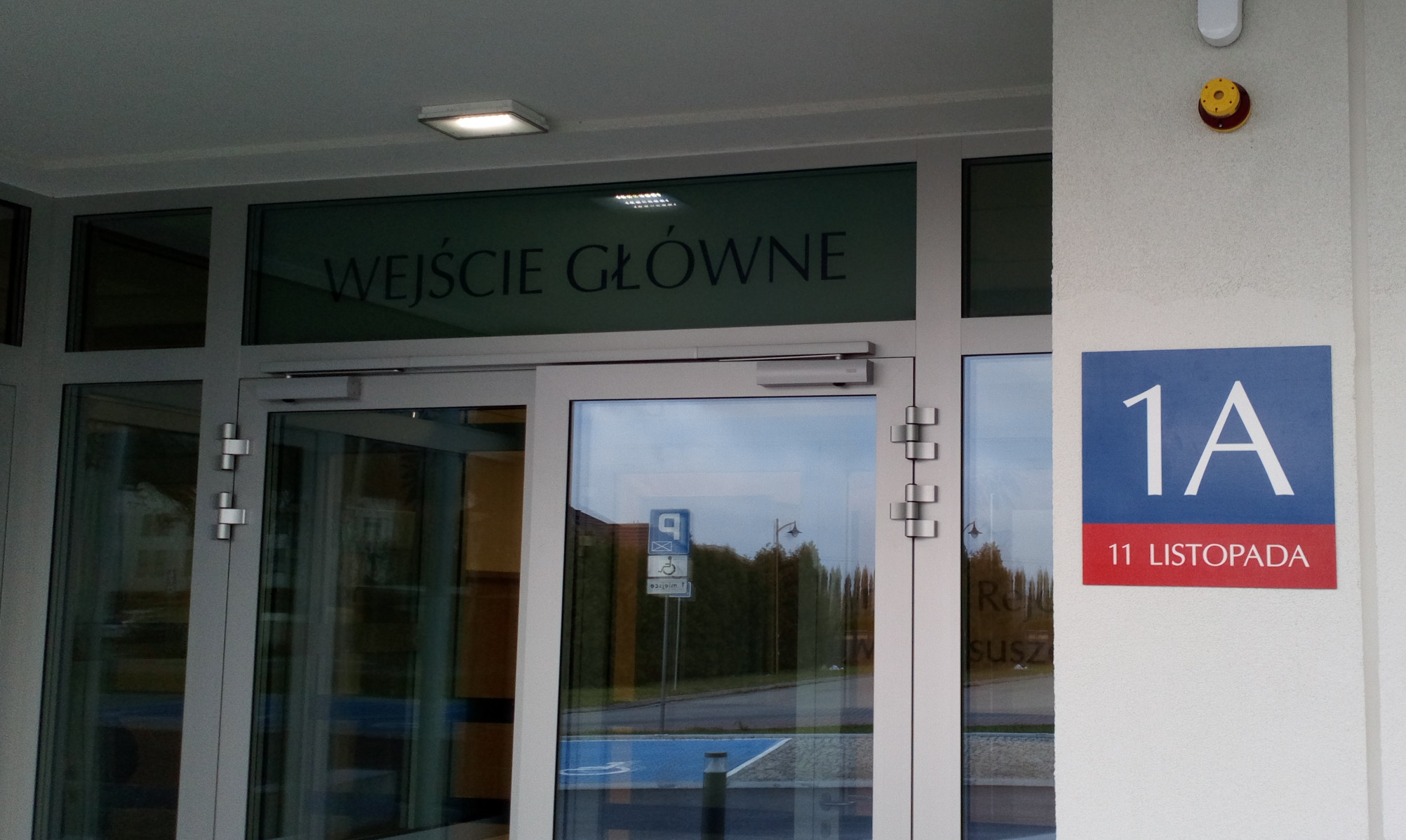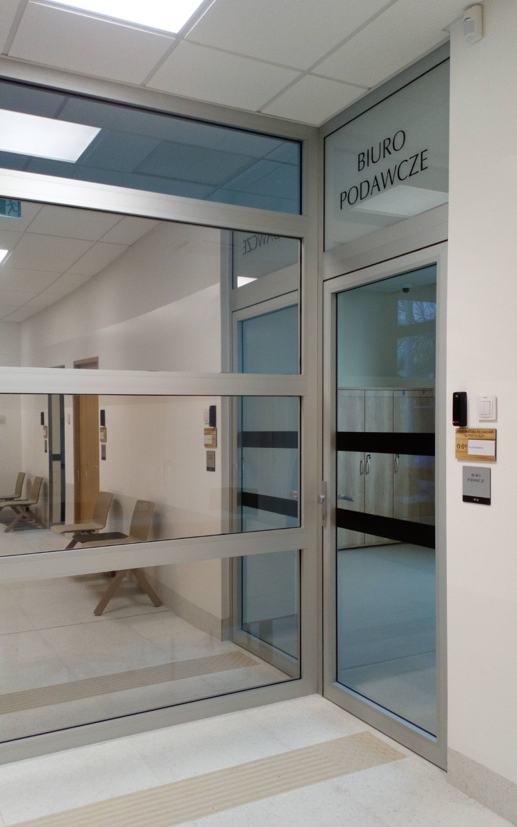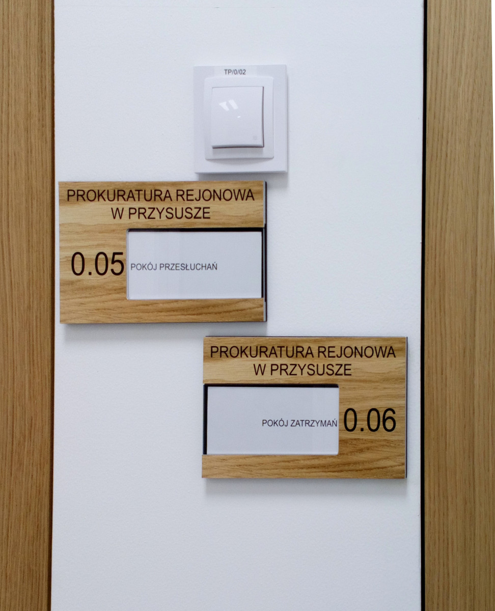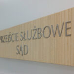 Oznakowanie całego gmachu Sądu Rejonowego w Sokołowie Podlaskim. Tabliczki i tablice informacyjne serii RHYTHM. Tablice zbiorcze modułowe informacyjne RHYTHM MAX oraz RHYTHM MIDI, tablice podwieszane – kierunkowe.