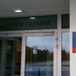 Oznakowanie nowego gmachu uczelni w Łodzi. Tabliczki serii CIRCLE, litery 3D + elementy wyklejane „mrożone”